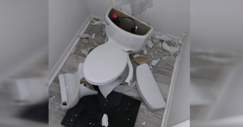 El inodoro quedó reducido a cientos de pedazos el domingo.
