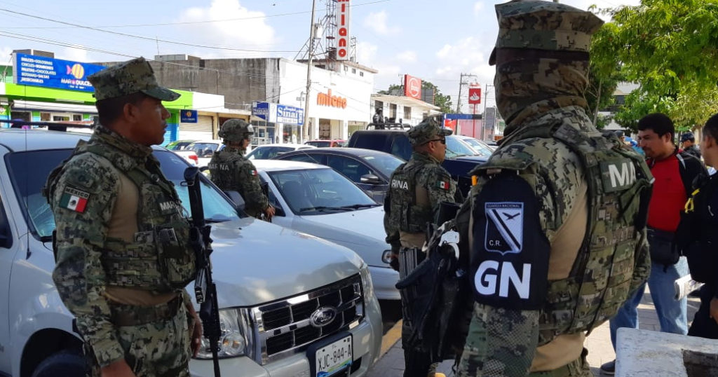 En la zona centro de la ciudad, se observó a un desplegado de efectivos de la Secretaría de la Defensa Nacional con las insignias en los brazos que los distinguen.
