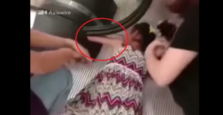 Una grabación muestra cómo el brazo de una niña pequeña quedó atascado en el barandal de una escalera eléctrica en China.