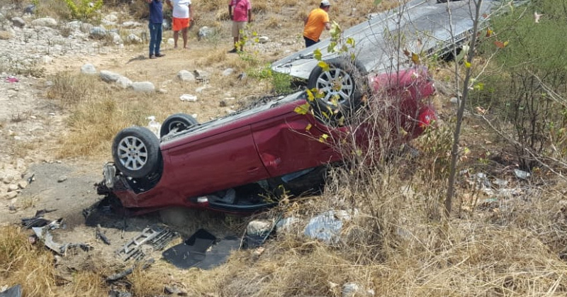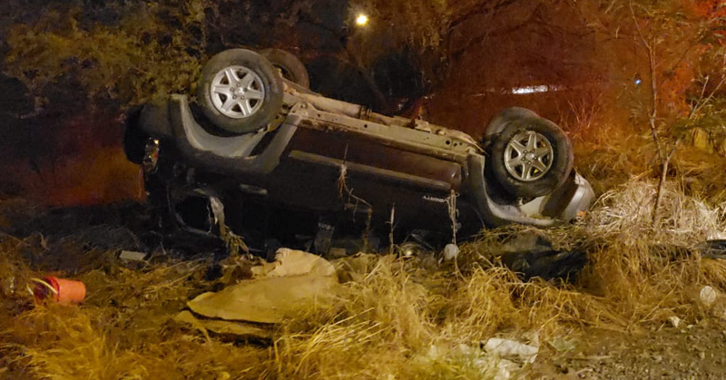 Nuevamente un vehículo volcó en este punto quedando con las llantas hacia arriba en el lecho de un arroyo, el conductor prefirió darse a la fuga dejando su Bora americano en el lugar del percance