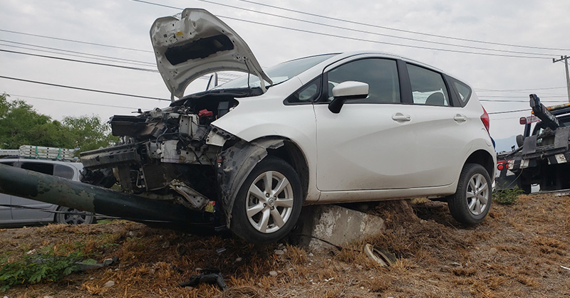 Ama de casa que circulaba sobre el Naciones Unidas sufre fuerte percance al tratar de esquivar a una camioneta que le invadió el carril y estrellarse contra la luminaria, por fortuna no sufrió heridas serias