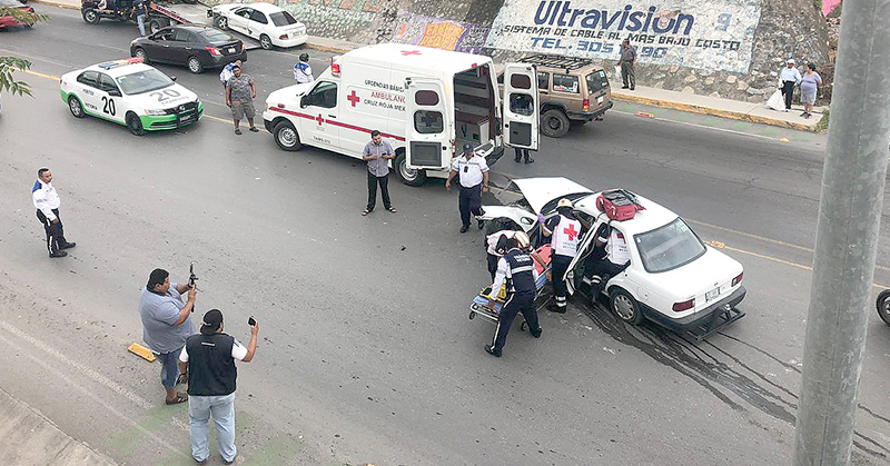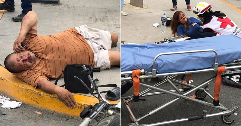 Ensangrentados y malheridos terminaron luego de que una Escape que se pasó el alto del 16 Veracruz los embistiera y los lanzara a las ruedas de un micro que por fortuna estaba detenido.