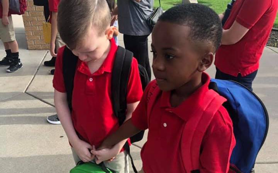 Durante el regreso a clases, un niño consoló a su compañero con autismo que lloraba por no querer entrar a la escuela