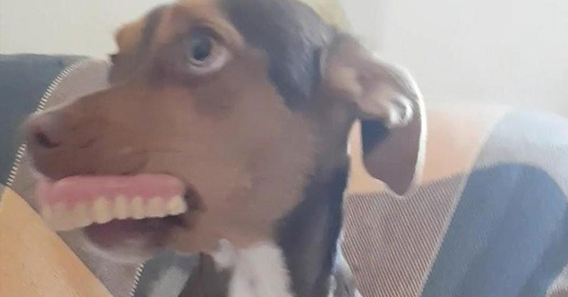 Perrita se ‘roba’ la dentadura postiza de una abuela