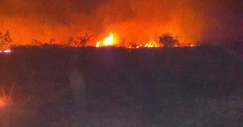 Espectacular incendio se registró durante la noche del martes en una ranchería del ejido Llano Grande, en la cual fueron arrasadas cerca de 10 hectáreas de pastizales y maleza.