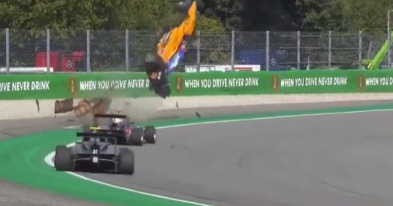 El monoplaza del piloto australiano Alex Peroni se elevó este sábado por los aires en la primera carrera de Fórmula 3, tras una salida de pista en el circuito italiano de Monza, para acabar aterrizando sobre las barreras de seguridad.