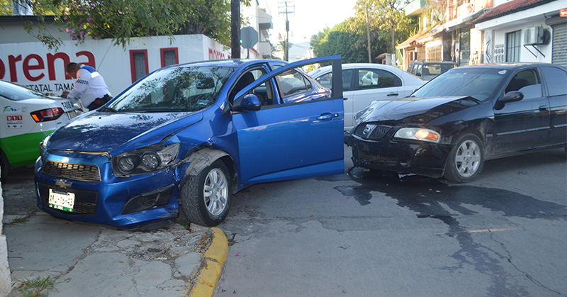 Estudiante de enfermería no supo como cruzar la rotonda instalada en el Libramiento Naciones Unidas y salida a Matamoros: ambas unidades fueron a dar al corralón municipal.