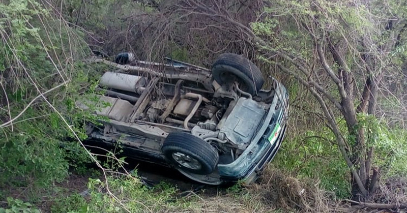 Familia y mascotas salen ilesas luego de volcar en el kilómetro 98 de la carretera Victoria-Matamoros a causa de un neumático que se le desprendió.