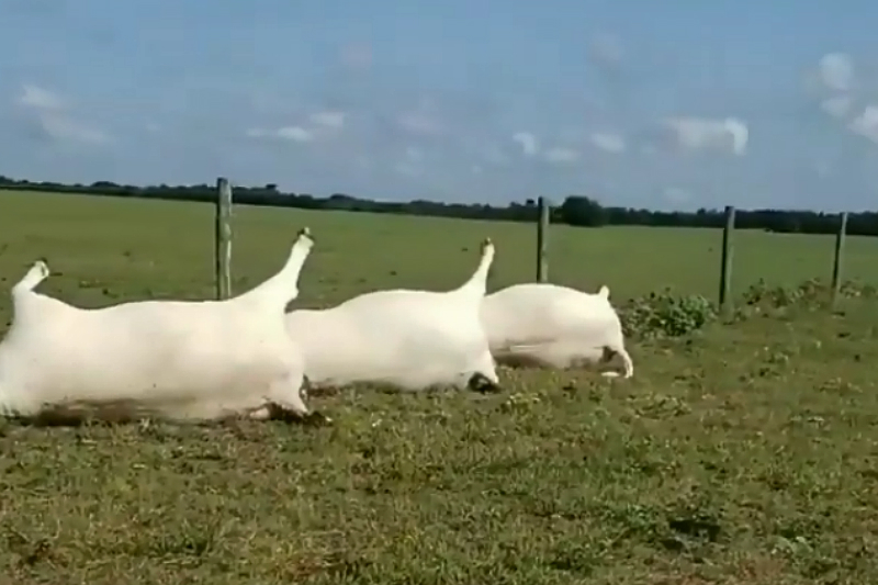 El en video se aprecia el cuerpo de las vacas en lo que pareciera una fila junto al cerco, sólo una de las vacas aparece a metros de distancia