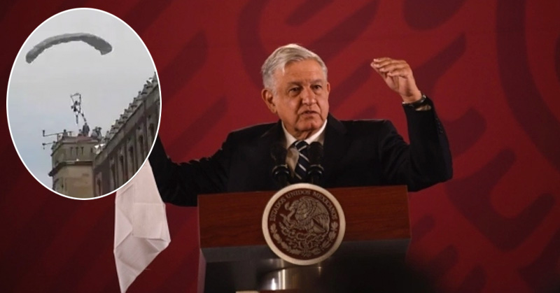 Paracaidista accidentado prefirió chocar con un árbol que dañar a la gente, asegura AMLO