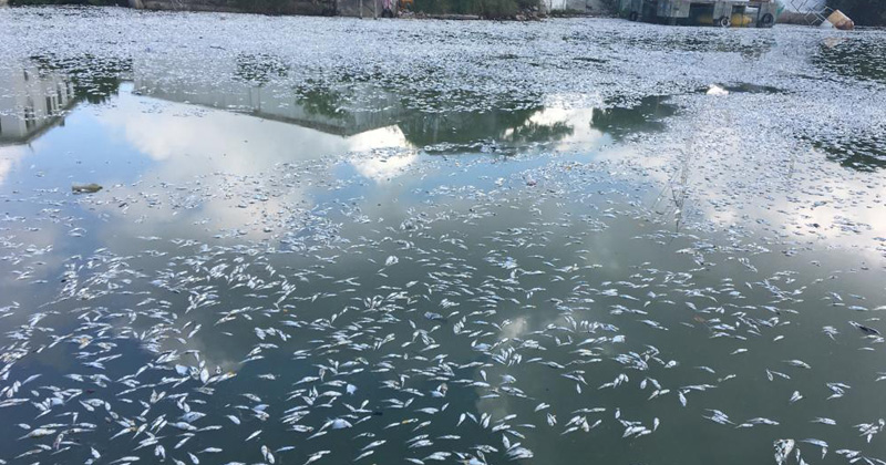 Sepultan 5 toneladas de pescados muertos