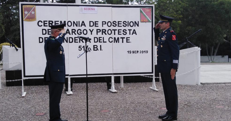 En emotiva ceremonia celebrada la mañana de este jueves se realizó la toma de posesión del cargo y toma de protesta de bandera al nuevo comandante del 51º Batallón de Infantería.