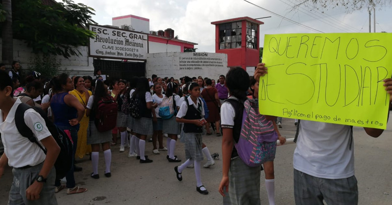 La mañana de este jueves padres de familia de la escuela secundaria “Revolución Mexicana” tomaron las instalaciones del plantel como medida de presión para que la SEV pague los salarios a los maestros de esta institución, los cuales no perciben pago desde el inicio del ciclo escolar y han dejado de dar clases afectando a 300 estudiantes.