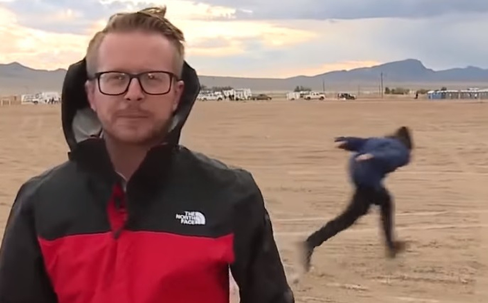 El hombre se coló en un noticiero para correr como el personaje del anime