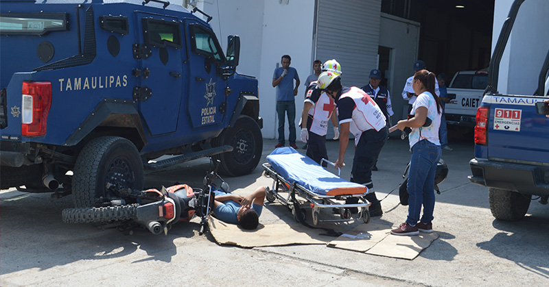 Motociclista choca de lleno con un vehículo blindado tipo SandCat que viró hacia un costado para ingresar a un taller, el herido tuvo que ser llevado a un hospital a causa de sus lesiones.