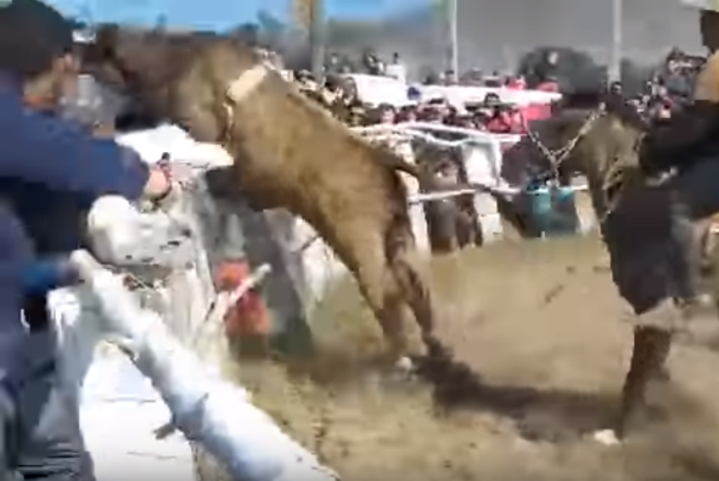 En el sector de la Pampilla, Región de Atacama, en Chile, un toro se lanzó contra el público de un rodeo, dejando al menos 10 personas heridas.