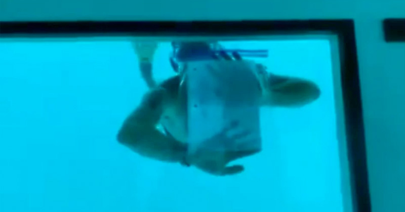 El joven se sumergió en el agua para pedirle matrimonio a través de una carta escrita por él.