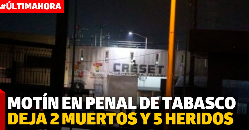 Al menos dos muertos y cinco heridos es el saldo de un motín registrado esta tarde en el Centro de Reinserción Social del Estado de Tabasco (CRESET).