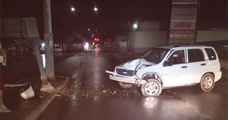 Un automovilista al conducir exceso de velocidad sobre el pavimento mojado perdió el control del volante y se proyectó en contra de un gabinete del Sistema de Monitoreo de las cámaras de la Central de Emergencia C-4