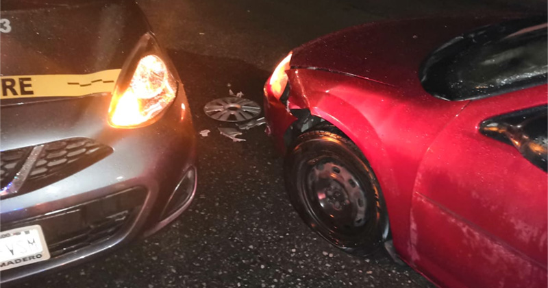 Ebrio automovilista al invadir el carril contrario al que circulaba se impactó en contra de un taxi en la zona centro de Tampico