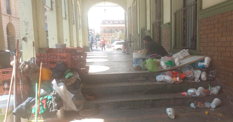 Una personas sin hogar, vive desde hace unas semanas en un tramo del pasillo Diligencias en parte del Centro Histórico.