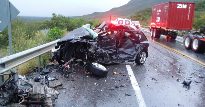 Al conducir en el tramo Tula – Palmillas cerca de la entrada al municipio de Bustamante se estrello contra un tráiler con contenedor cuyo chofer se dio a la fuga sin que fuera localizado.
