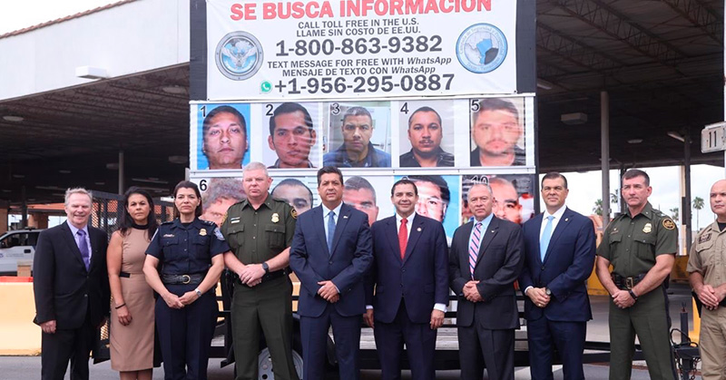 HIDALGO, TEXAS.- El Gobernador Francisco García Cabeza de Vaca y Austin Skero, Subjefe del Corredor del Sur de Texas de la Fuerza de Tarea Conjunta del Departamento de Seguridad Interna de Estados Unidos, pusieron en marcha la tercera fase de la campaña binacional “Se busca”, en la que se identificaron diez objetivos delincuenciales.