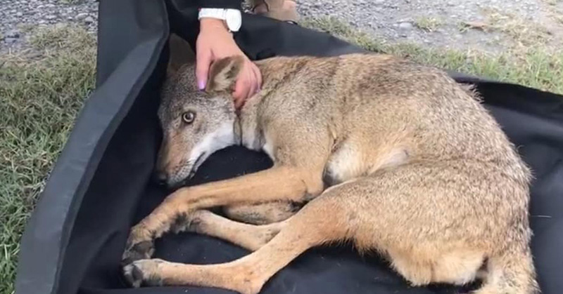 El rescate de un perro callejero herido en Ciudad Victoria, Tamaulipas, pero que en realidad era un coyote, es posible que tenga un triste desenlace, ya que el coyote no da indicios de poder recuperarse de sus heridas.
