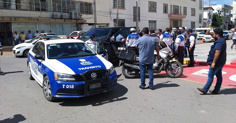 Pareja a bordo de una camioneta con placas del estado de Hidalgo se estacionan de forma incorrecta frente a palacio de gobierno: al ser sancionados se generó una acalorada discusión.