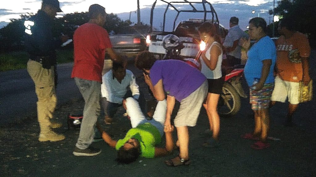 Una joven de 22 años de edad, que circulaba a bordo de una motocicleta protagonizó dramático percance al ser embestida por una camioneta terminando severamente lesionada, mientras que el conductor se daba a la fuga.