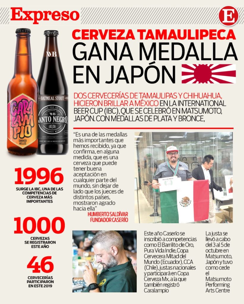 #GráficoExpreso Las cervecerías Caserío de #Tampico y Ancestrus de Cuauhtémoc, #Chihuahua, se colaron entre las ganadoras de la International Beer Cup, celebrada en #Asia