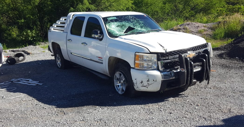 Conductor de una camioneta sufre une experiencia cercana a la muerte al recibir el impacto de una piedra en el parabrisas y tras perder el control, maromeó un par de veces en la ‘Rumbo Nuevo’.