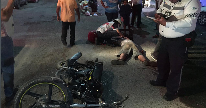 Motociclista se estrella en el costado de una ‘rangercita’ que no hizo en debido alto en calles de la colonia Luis Echeverría: el lesionado tuvo que ser llevado de urgencia al hospital.