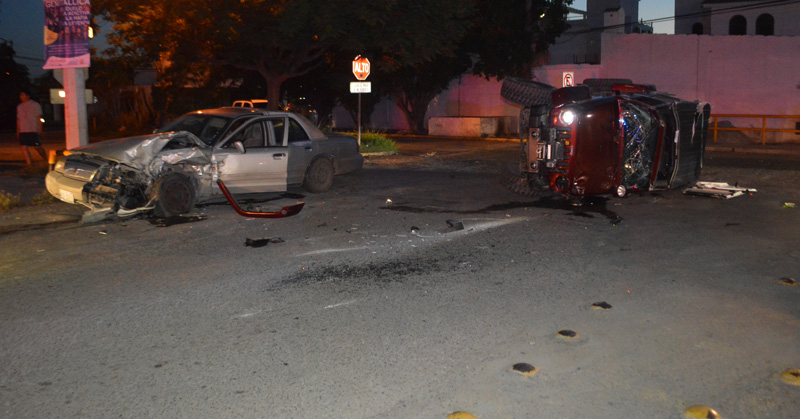 El conductor resulta golpeado luego que pierde el control del jeep que conducía, choca un auto donde viajaban, padre e hijo y luego vuelca