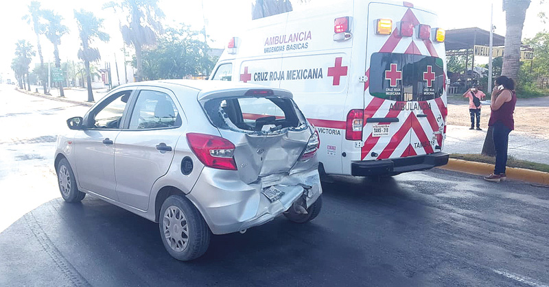 Cinco personas, entre ellas un bebé y una adolescente resintieron el golpe por alcance que ocurrido frente a una estación de servicio.
