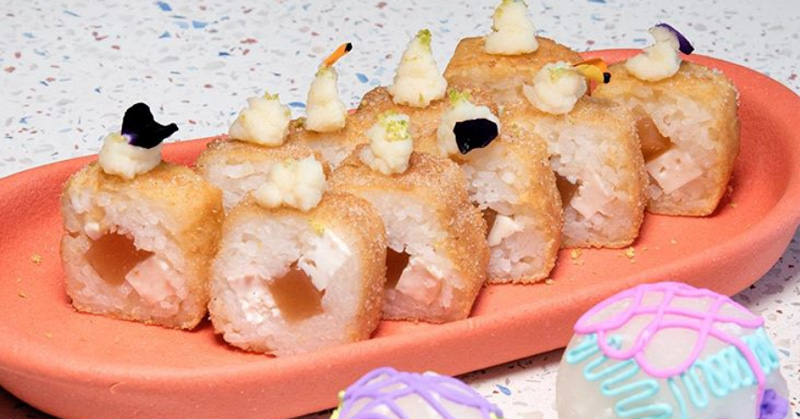 Un producto elaborado con ate de membrillo, queso panela, crema pastelera, un toque de naranja y arroz.