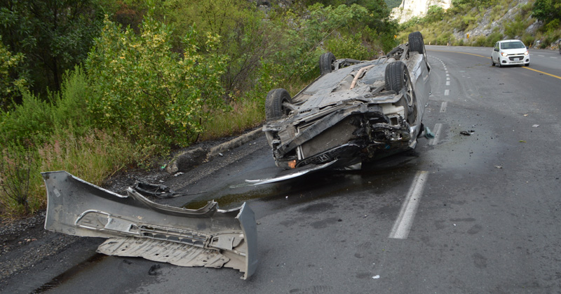 Un vehículo quedó con las llantas hacia arriba y otro mas se salió del camino presuntamente por no extremar precauciones por la humedad dejada en el pavimento por las recientes lluvias