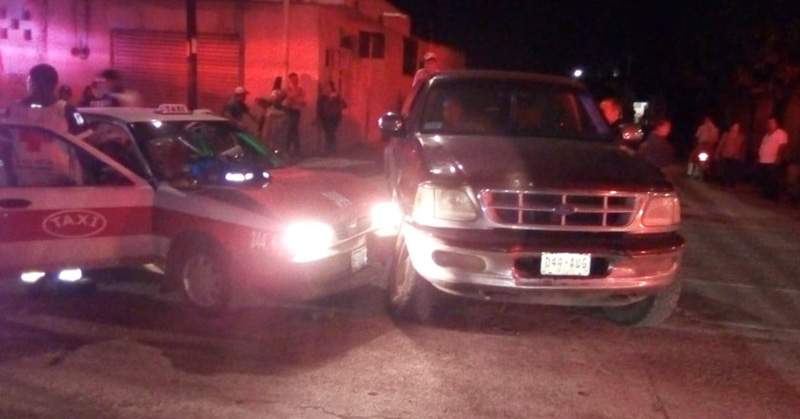 Encontronazo entre camioneta y taxi.