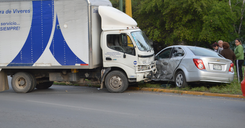Vehículo de una dama es prácticamente ‘tacleado’ por una unidad de carga en el cruce del 21 bulevar Adolfo López Mateos dejando daños materiales que alcanzan los 80 mil pesos