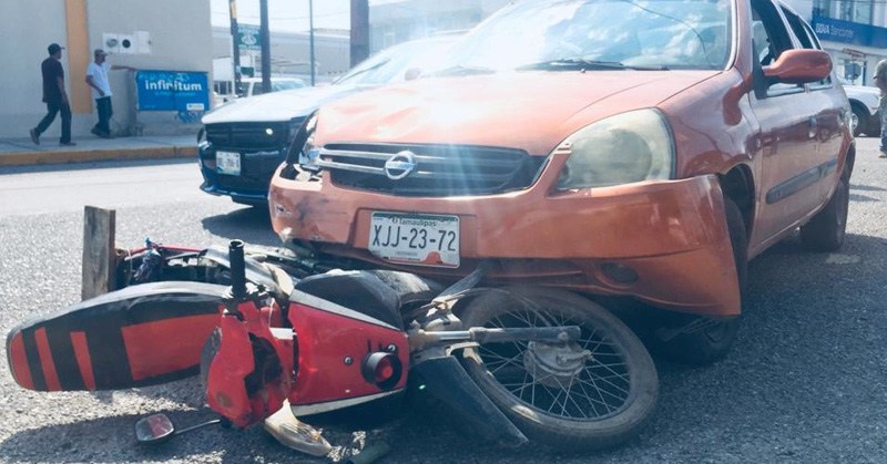 Conductora atraviesa ese crucero sin tomar sus precauciones y embiste a un matrimonio que circulaba a bordo de una motoneta