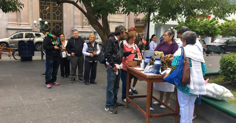 Más de 170 tamales, café y champurrado fueron repartidos a igual número de personas algunas en situación de calle por devotos católicos hoy en el Día de los Fieles Difuntos.