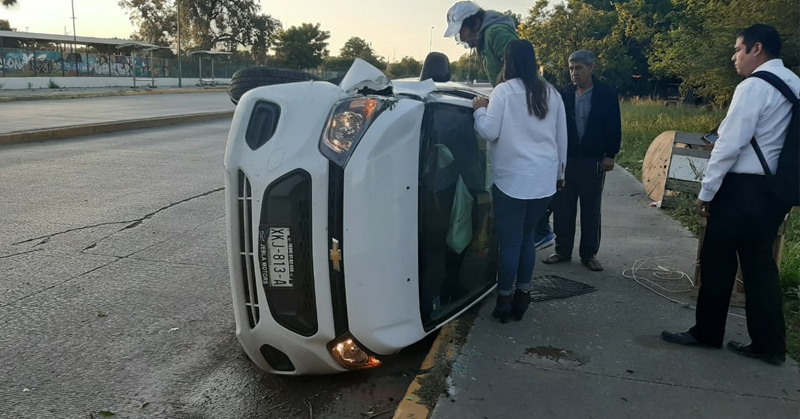 Mujer al volante acelera de mas sobre el eje vial y termina volcando su automóvil, aunque el percance fue muy aparatoso ella salió sin un solo rasguño