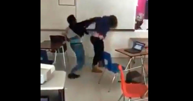 Un video grabado en Estados Unidos muestra el tremendo encuentro entre ambos en una aula