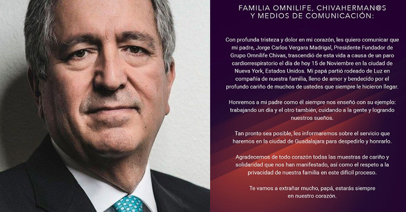 Jorge Vergara, dueño de Chivas y Grupo Omnilife, falleció, confirmó su hijo