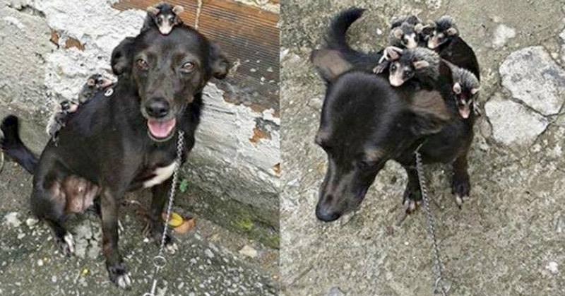 Pretinha, la perra que adoptó tlacuaches huérfanos