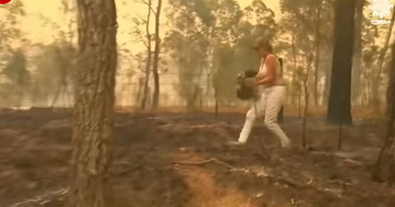 Mujer arriesga su vida para salvar a koala de incendio en Australia