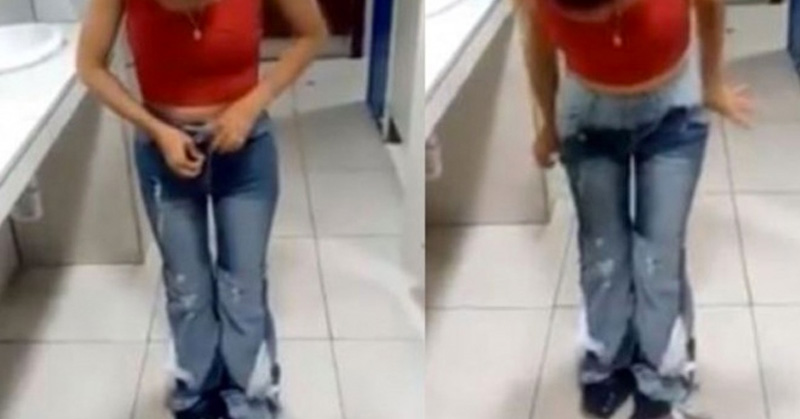 Mujer intenta robar 8 jeans poniéndose uno sobre otro