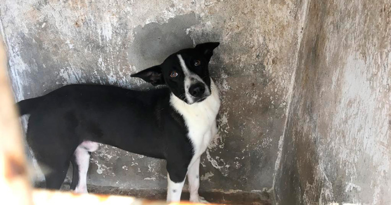 Un perrito mestizo de un año medio, tiene enjaulado casi dos meses en el Centro de Salud de Tampico, esperando ser adoptado, pero nadie se ha acercado siquiera verlo