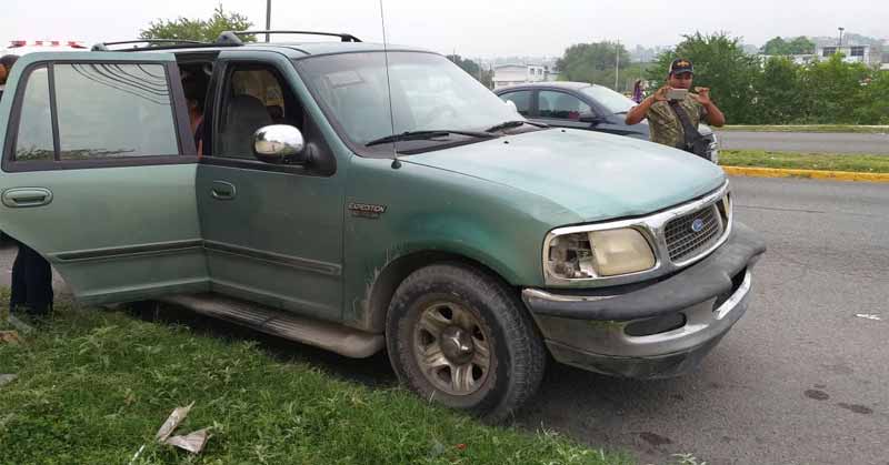 La mujer al dar vuelta en U, rebasa el alto imaginario y en ella se ensarta el policía que conducía una motocicleta; el oficial sufrió probable factura en una pierna