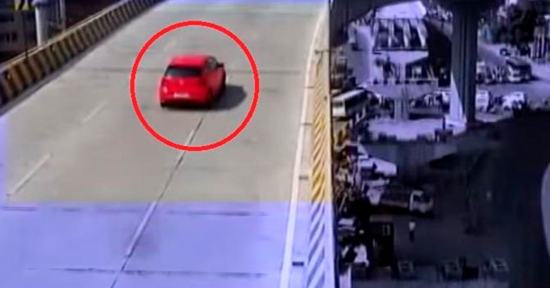 Vehículo sale volando de puente y cae sobre peatones (video)